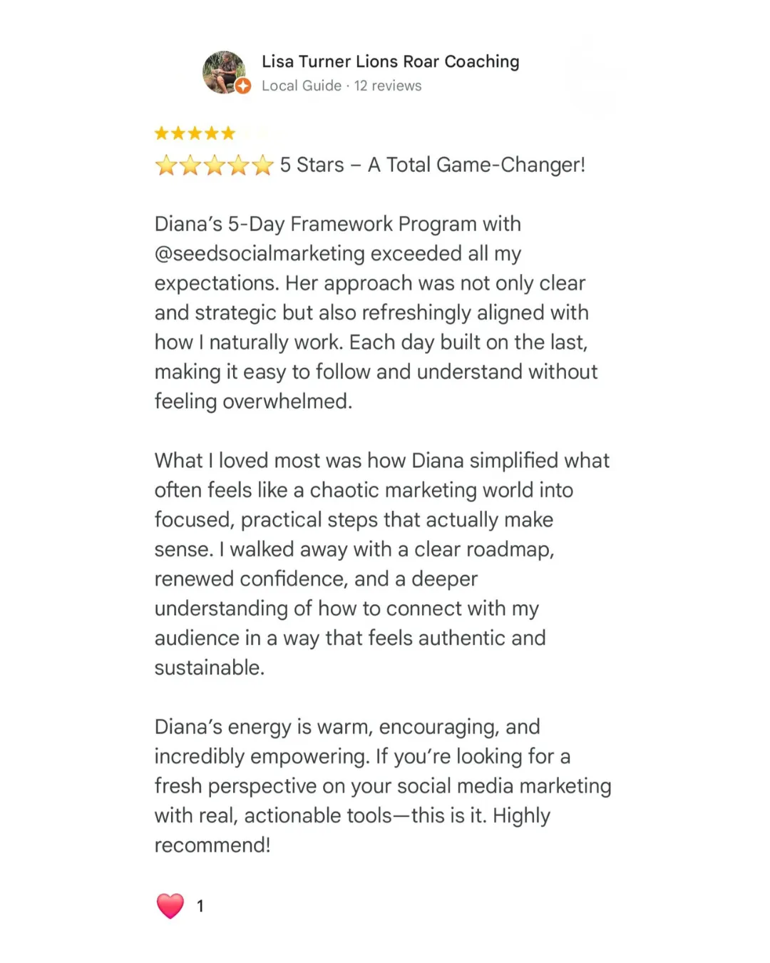 That’s why I created the 5-Step Social Media Freedom Framework, a sustainable strategy designed to give solo entrepreneurs the freedom, step-by-step plan, and confidence they need without wasting hours on social media.